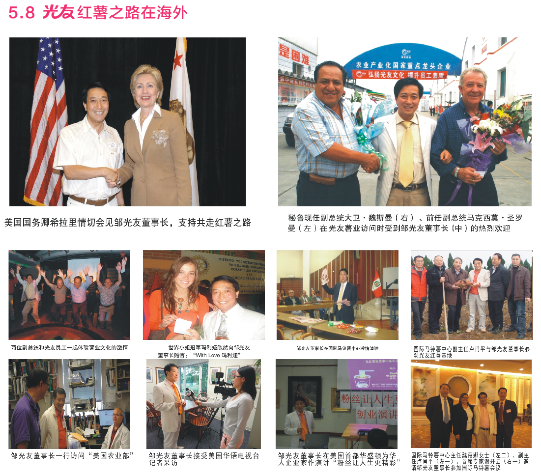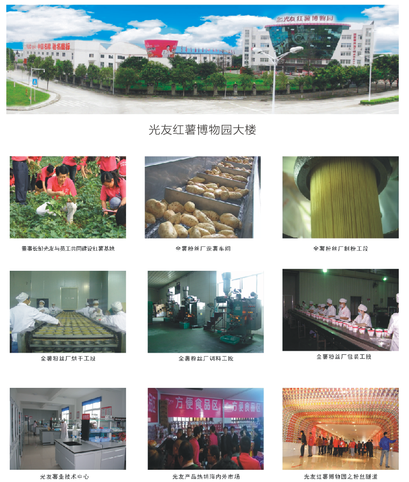 光友薯業(yè)經(jīng)歷二十年歷練,成為了薯業(yè)深加工的龍頭企業(yè),取得了舉世矚目的十大成果!成就了光友紅薯之路!光友薯業(yè)20年創(chuàng)造出經(jīng)營(yíng)模式及技術(shù),未來(lái)20年按照紅薯全產(chǎn)業(yè)鏈打造紅薯產(chǎn)業(yè),即從過(guò)去20年以紅薯淀粉粉絲為主。走向未來(lái)20年,發(fā)展成為開(kāi)發(fā)紅薯塊根、全薯、淀粉、粉絲、紫薯花青素、紫薯飲品、紅薯膳食纖維等系列食品,同時(shí)開(kāi)發(fā)紅薯地上藤蔓味脫水紅薯尖、紫薯茶等系列食品,同時(shí)向紅薯原料加工供應(yīng)、紅薯原料標(biāo)準(zhǔn)化種植等上游業(yè)務(wù)發(fā)展,另一方面向市場(chǎng)營(yíng)銷策劃、國(guó)際國(guó)內(nèi)貿(mào)易業(yè)務(wù)等下游業(yè)務(wù)發(fā)展,從而,將光友薯業(yè)打造成為全球薯業(yè)領(lǐng)袖,實(shí)現(xiàn)“百年薯業(yè) 百億薯業(yè)”的宏偉戰(zhàn)略目標(biāo)。