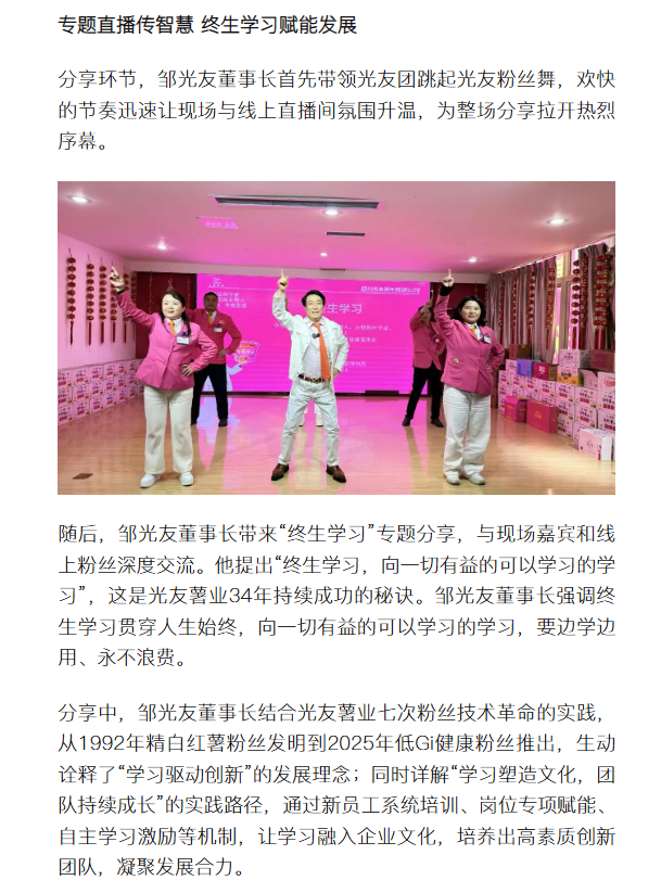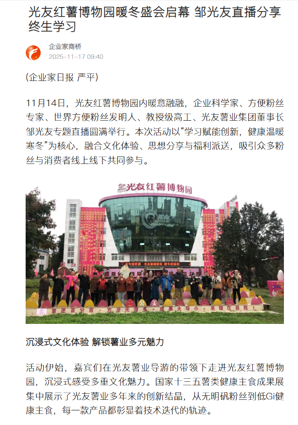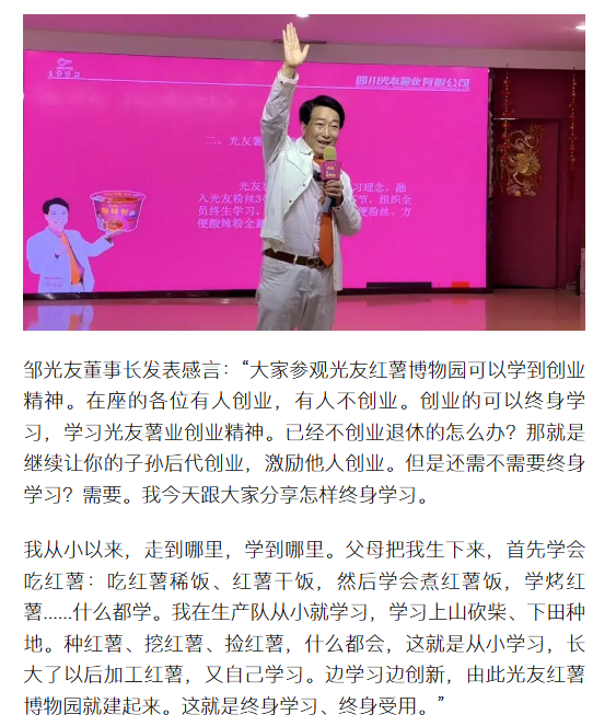轉載搜狐網(wǎng)-光友紅薯博物園暖冬盛會啟幕 鄒光友直播分享終生學習