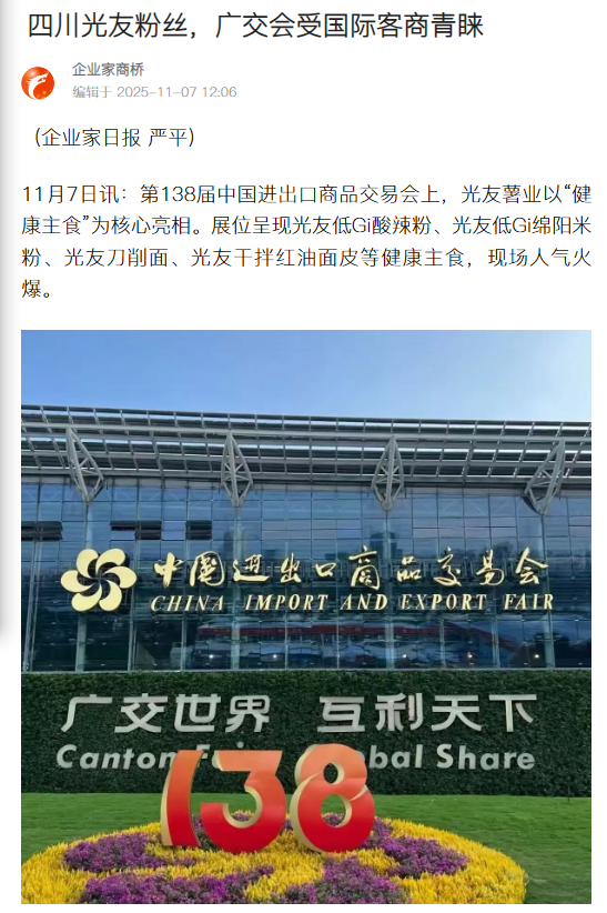 轉(zhuǎn)載搜狐網(wǎng)-四川光友粉絲,廣交會(huì)受?chē)?guó)際客商青睞