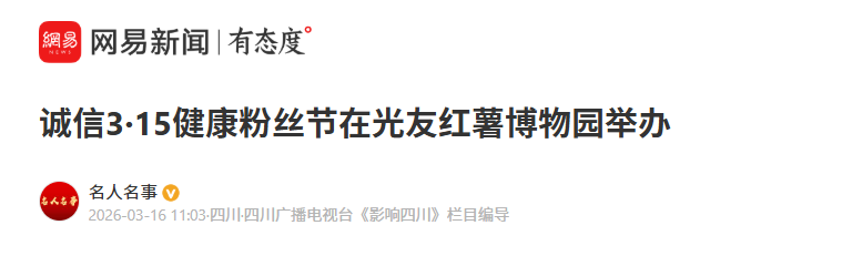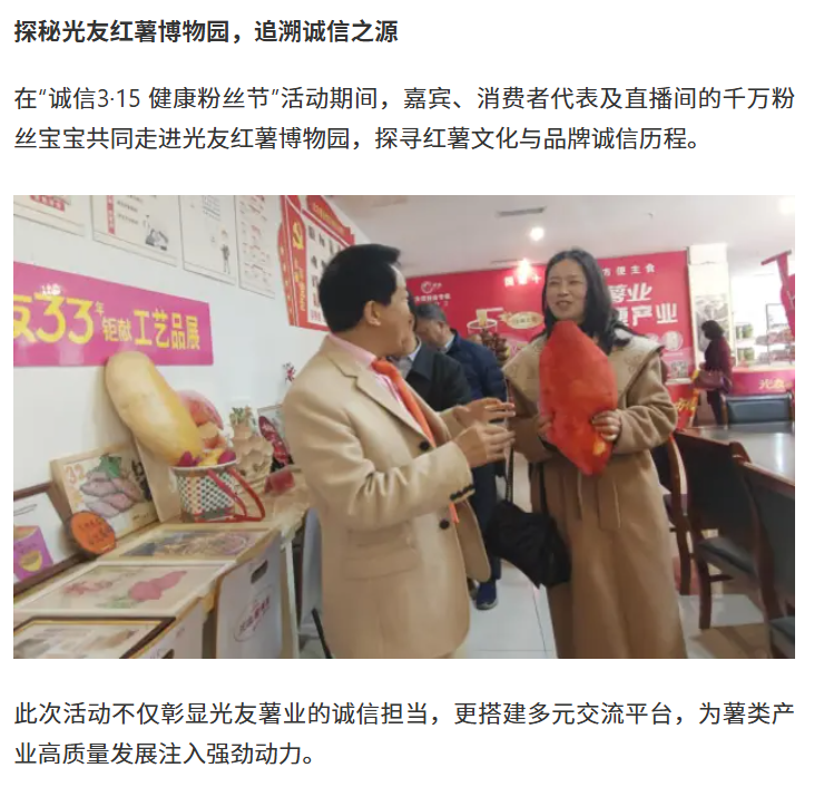 轉(zhuǎn)載網(wǎng)易新聞 誠信3·15健康粉絲節(jié)在光友紅薯博物園舉辦