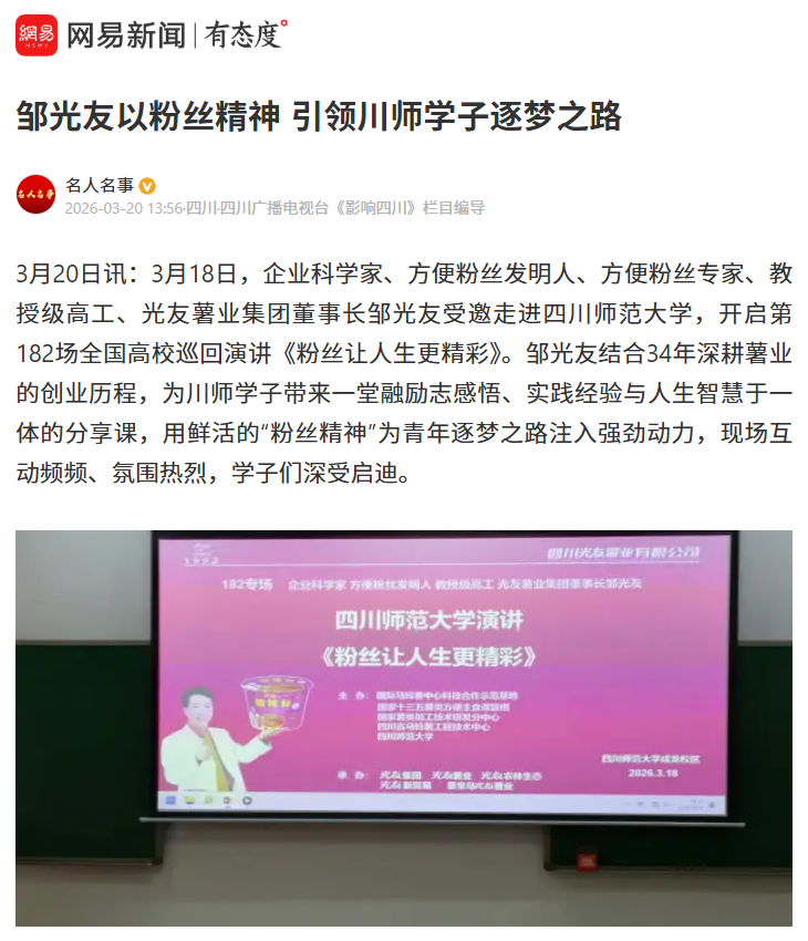 轉(zhuǎn)載網(wǎng)易新聞 鄒光友以粉絲精神 引領(lǐng)川師學(xué)子逐夢之路