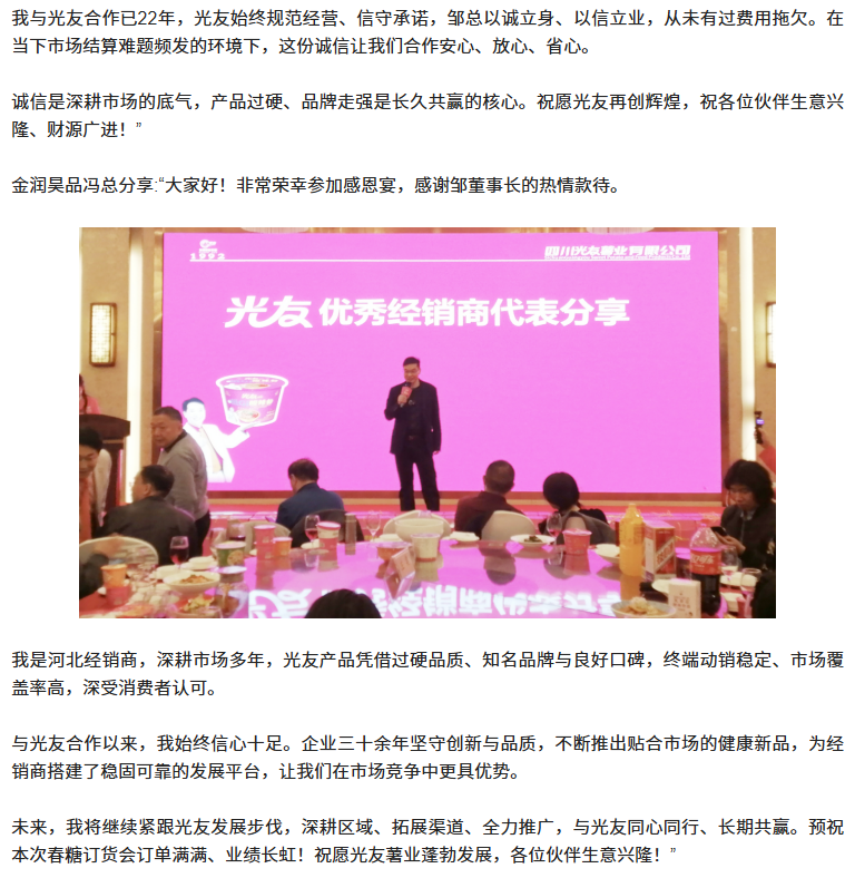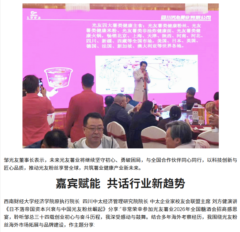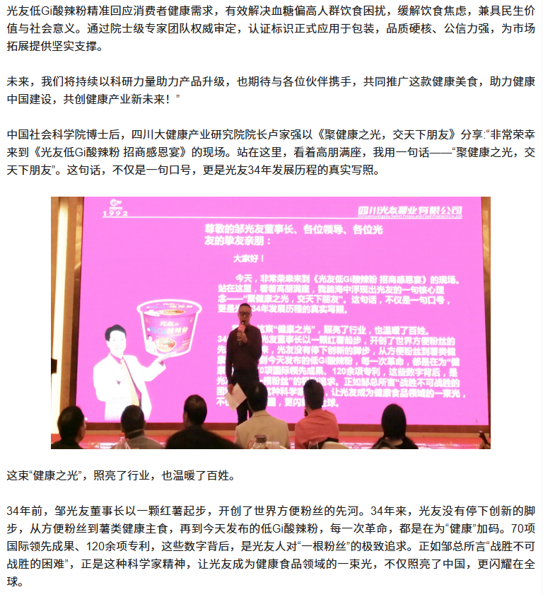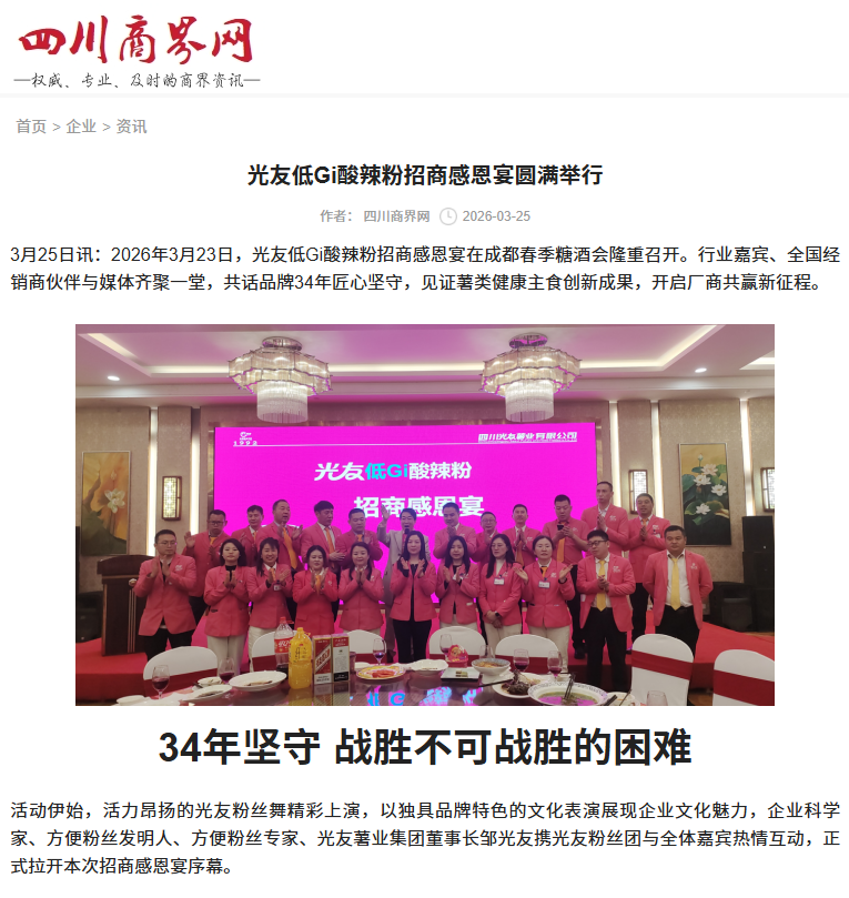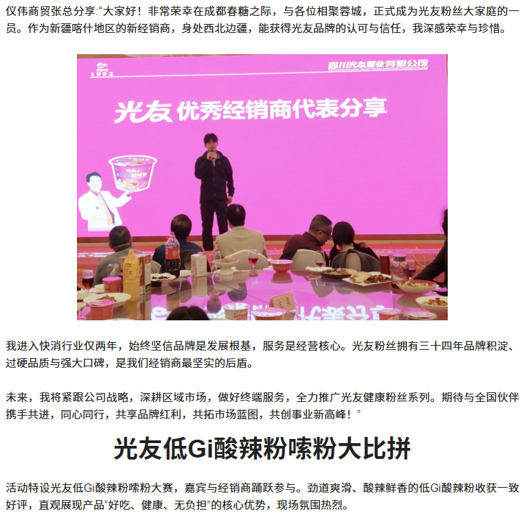 轉載四川商界網 光友低Gi健康酸辣粉招商感恩宴圓滿舉行