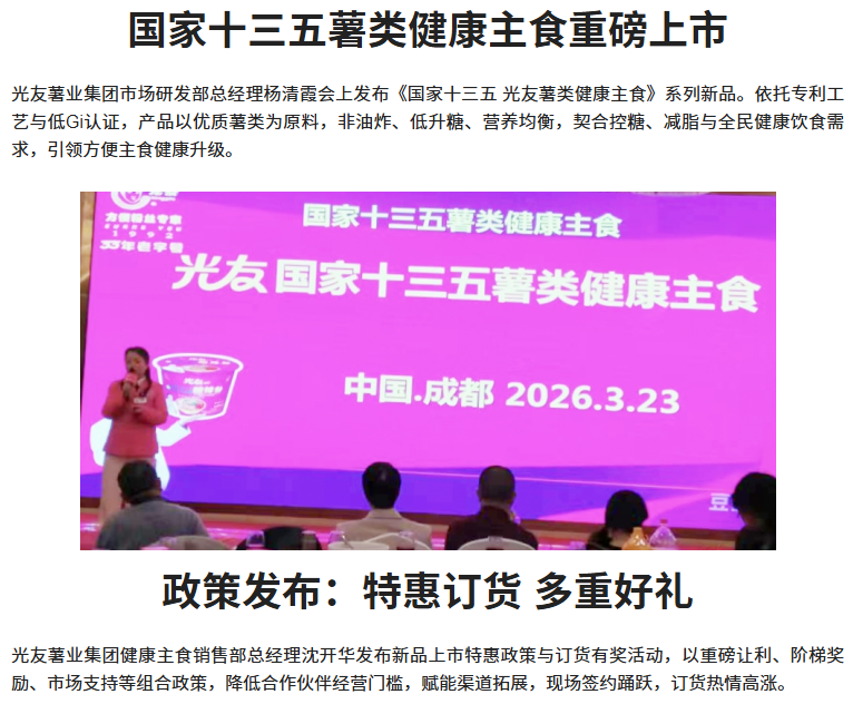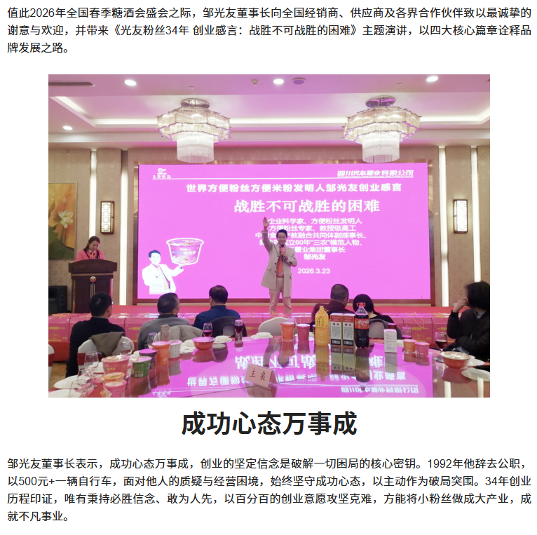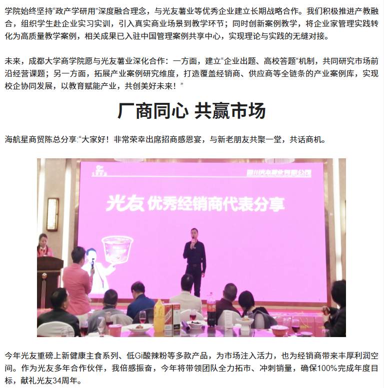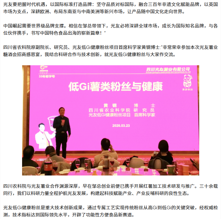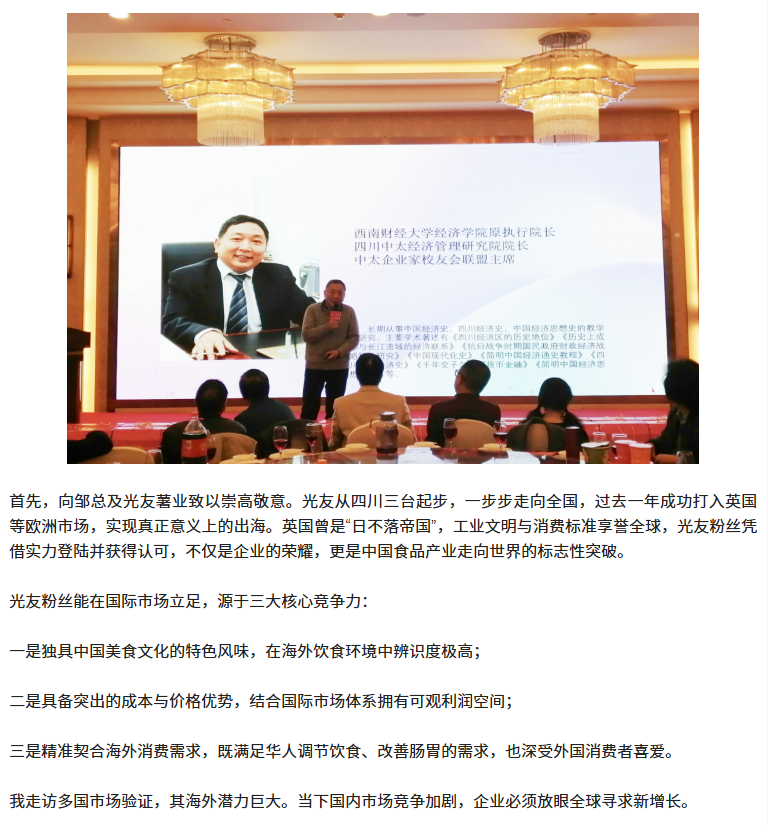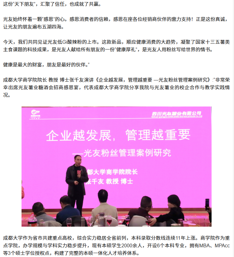 轉載四川商界網 光友低Gi健康酸辣粉招商感恩宴圓滿舉行