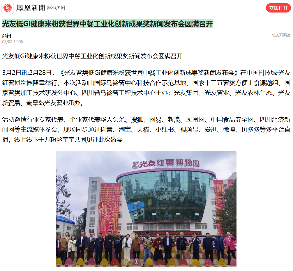 光友低Gi健康米粉獲世界中餐工業(yè)化創(chuàng)新成果獎(jiǎng)新聞發(fā)布會(huì)圓滿召開https://ishare.ifeng.com/c/s/8rA9R8r7LEH